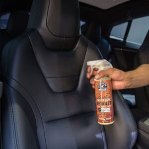 Ele mantém o couro natural, o couro selado durável e o vinil sintético. O quick detailer pulverizável levanta sujeira, poeira, impressões digitais e óleos corporais da superfície do couro sem prejudicar a cor ou tato. É fácil de usar não é oleoso, não tem toque escorregadio ou brilho oleoso.